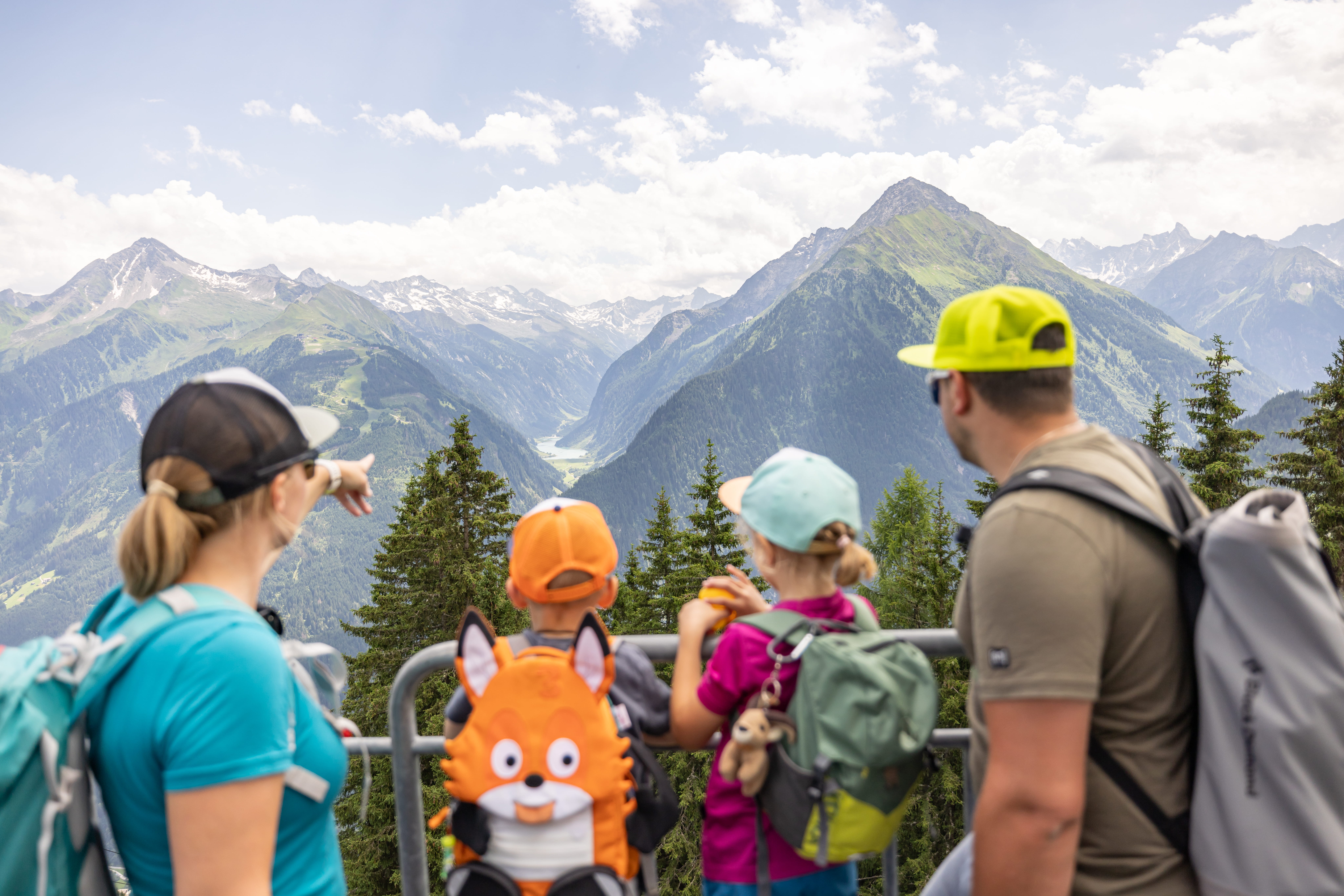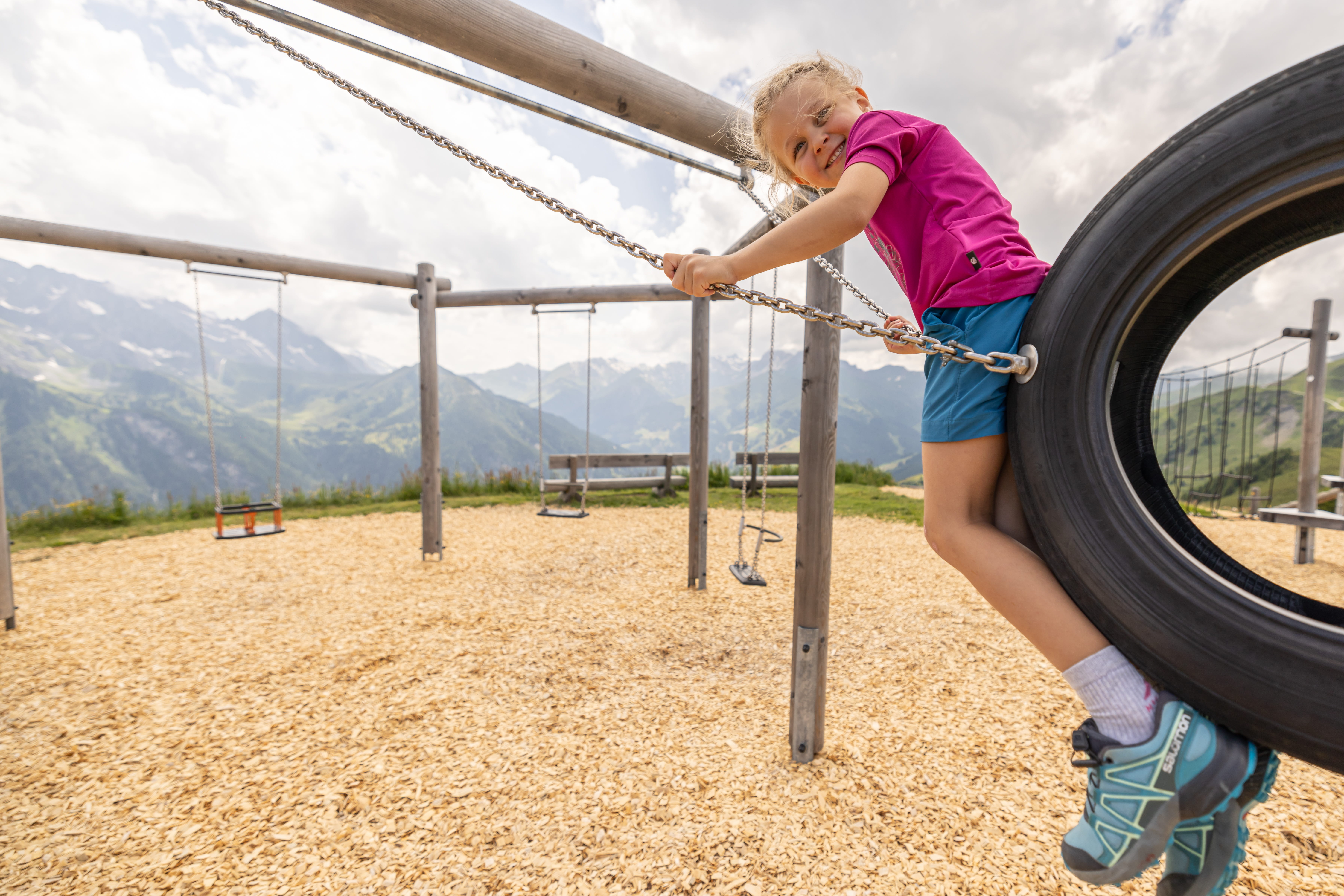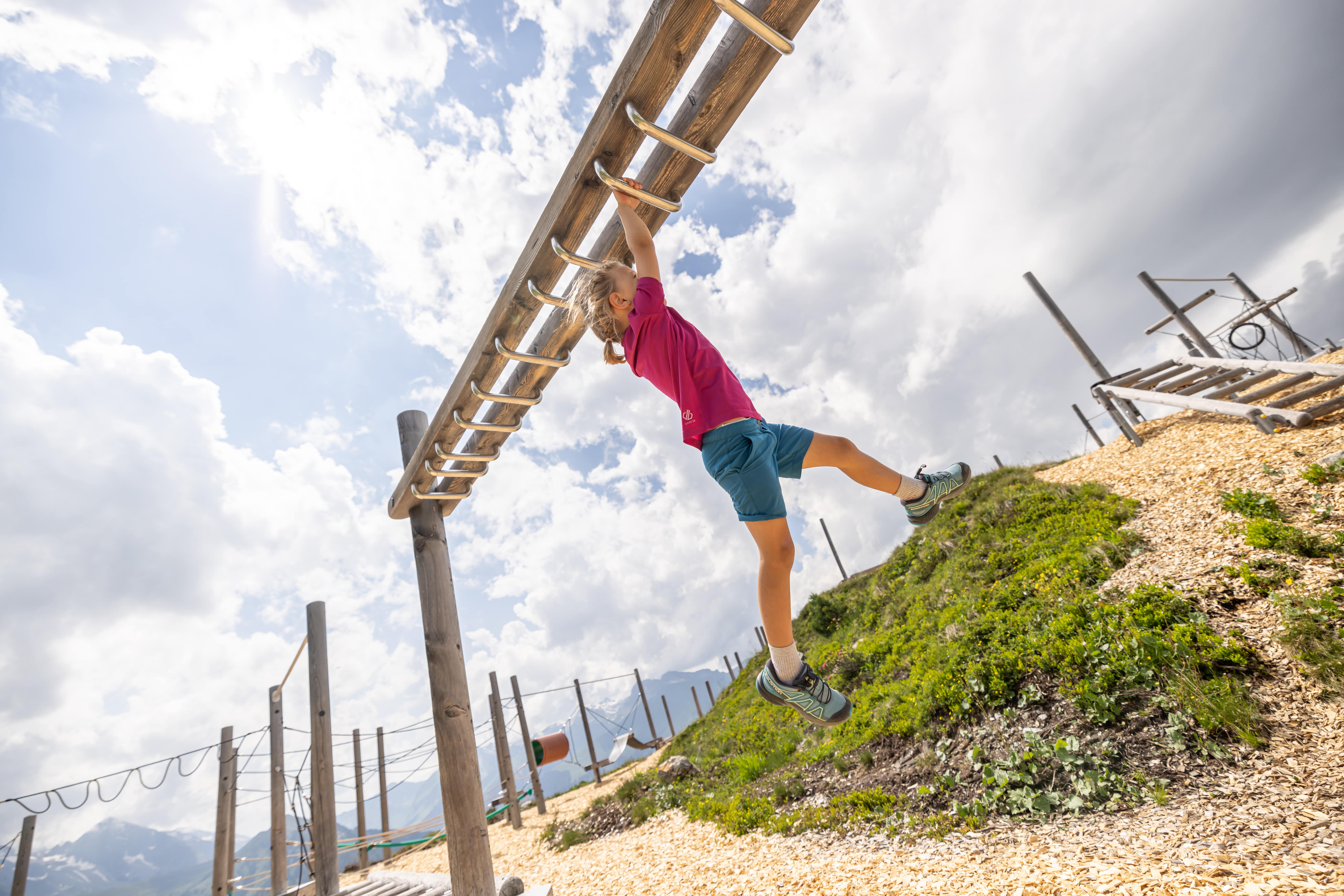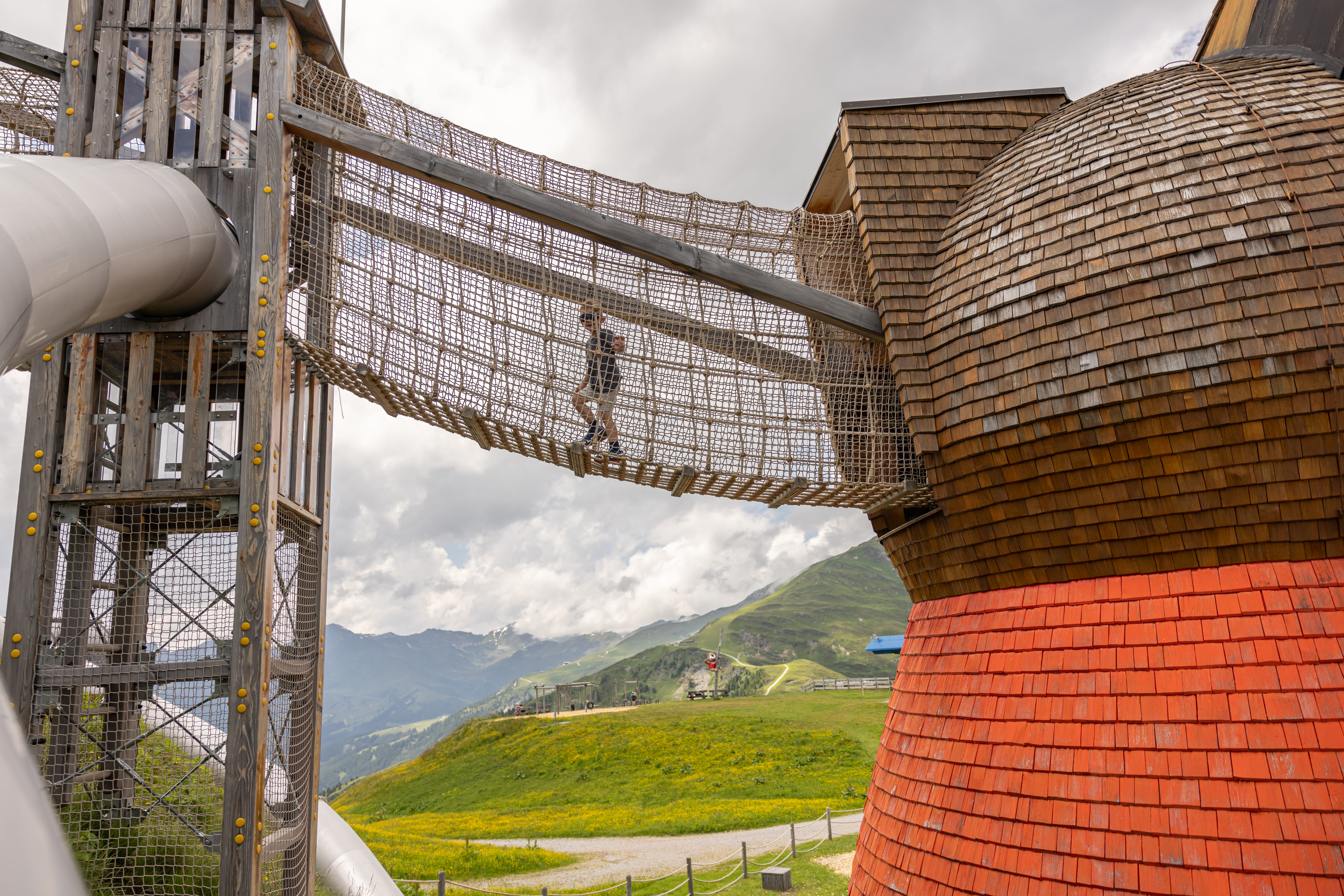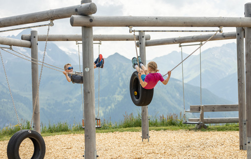 Not far from the idyllic reservoir at Finkenberg, a new Summer Paradise awaits all little hikers. The highlight of the spacious area with jump air cushion, sand play area, balancing paths and much more can be seen from afar. An 8 metres high wooden “playground” Pepi welcomes all children to the new Pepi’s Kinderland, where the ultimate playground for all children is housed inside. Thrilling fun can be found spread over its 3 floors. In addition to a crawling tunnel, playhouse and a magic mirror, there is also a climbing wall and many other attractions. Those who have enough of playing and climbing, can simply leave the Giant Pepi per slide. Through giant Pepi’s eyes and additional peepholes the children can spy on their parents, enjoying a coffee break at the terraces of the surrounding restaurants.