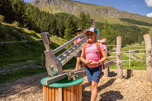 Wie viel Wasser braucht der Mensch? Was sind Thermalquellen? Diese Fragen werden entlang des Weges beantwortet und gemeinsam mit dem Maskottchen "Gletscherfloh Luis" entdecken Klein und Groß verschiedene Stationen, die über die Kraft des Wassers und die Wandelfähigkeit des lebensnotwendigen Naturelements berichten. Mut und eine gehörige Portion Geschicklichkeit benötigt man bei der großen Wasserfallschaukel und dem Zielschießen mit Wasserpumpen. Für alle Wasserforscher ist dieses nasse Abenteuer genau das Richtige!
