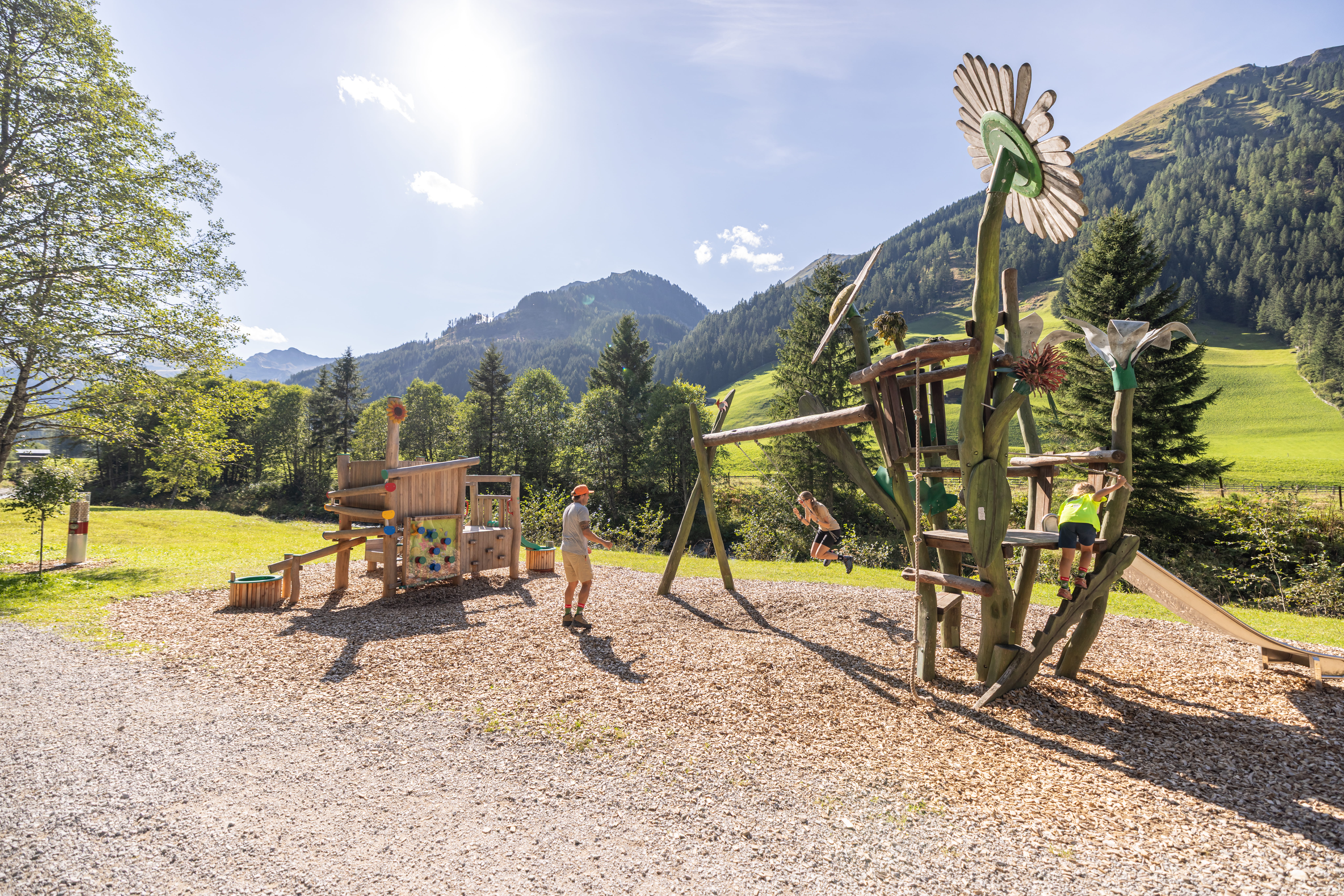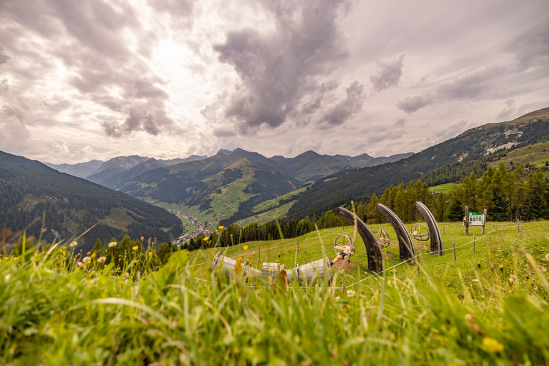 Gehe auf Erkundungstour in der Pflanzenwelt und erfahre mehr über die heimischen Blumen wie Margeriten, Frauenmantel, Glockenblumen, aber auch die verschiedenen Baumarten des Tuxertals. Prüfe deine Geschicklichkeit und deinen Mut beim Kletternetz, bei den Balancierstangen und beim Zapfen schießen oder im Heuhüpfstall.